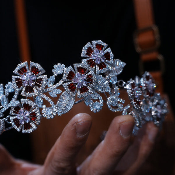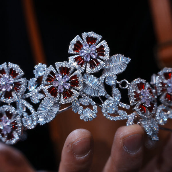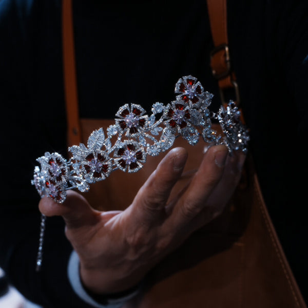 Elegant Burgundy Crystals Wedding Crown Headpieces asl-0304