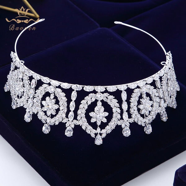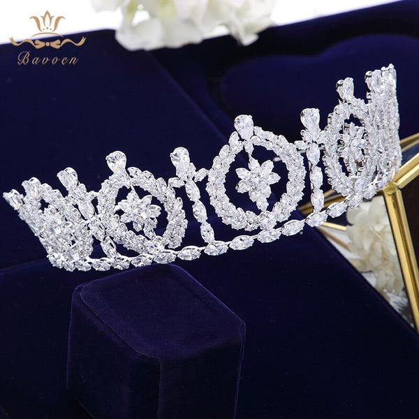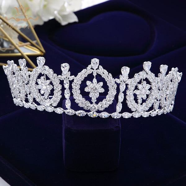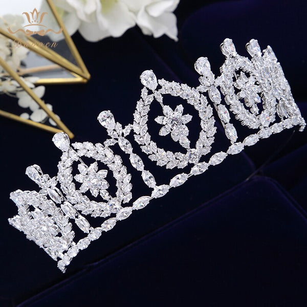 Royal Cubic Zircon Wedding Tiaras Crowns Headpieces Silver Brides Hairbands