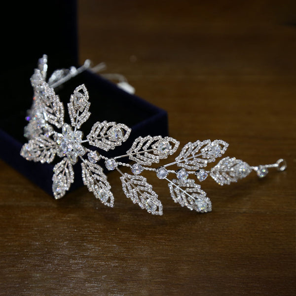 Sparkle Leaves Crystal Tiaras Headbands Wedding Hair Accessory